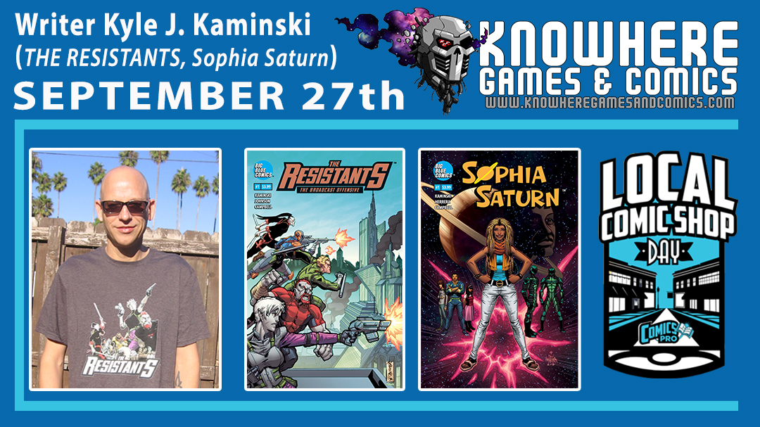 Hey San Diego! Writer/ publisher Kyle J Kaminski be at Now Or Never Comics at 1055 F St, San Diego, CA on August 13th. We’ll be selling, signing, and showcasing the comic series The Resistants, HYPER-ACTION, & Sophia Saturn from 11:00-3:00. Thanks so much to Aaron and the gang at Now Or Never for having us. Check out their fantastic selection of new and old comics and vintage toys. I hope to see you there!
