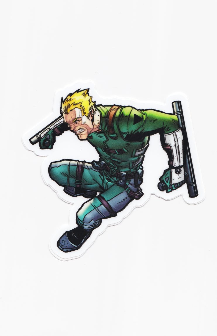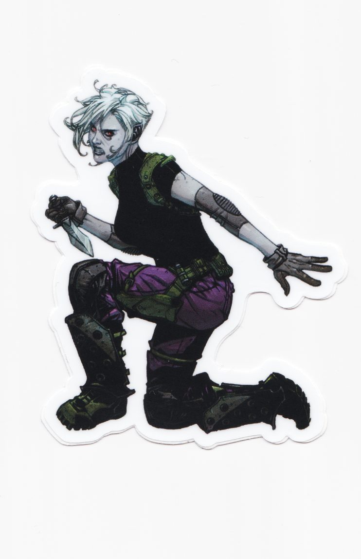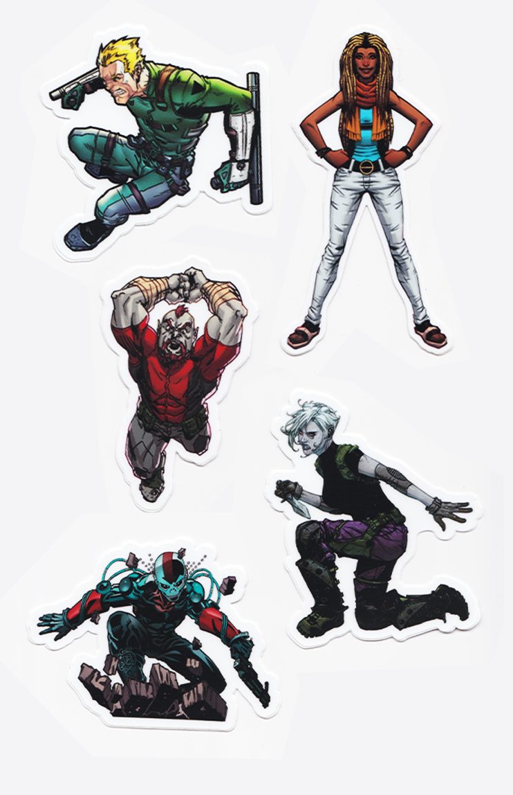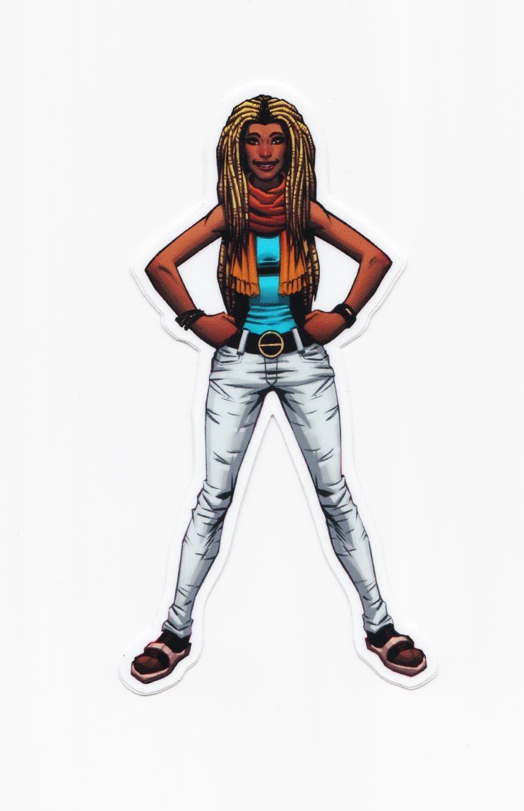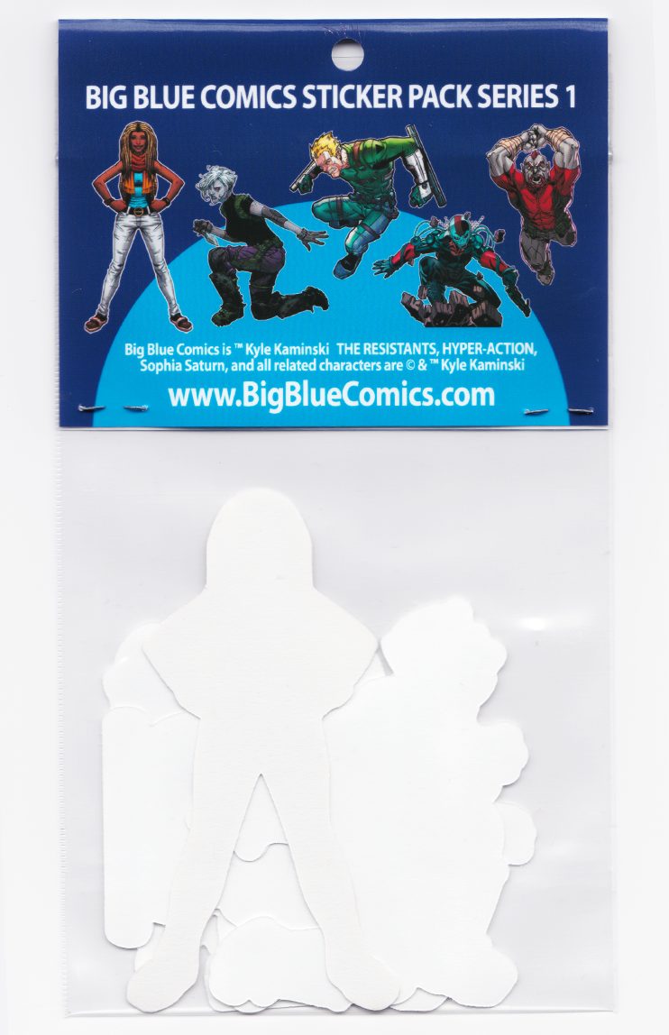 This sticker pack includes 5 vinyl stickers featuring the characters from THE RESISTANTS, HYPER-ACTION, & Sophia Saturn. Each Full-Color sticker is up to 2.5″- 4″ long. In this pack: Interval, Adam, Melee, Kona, & Sophia.